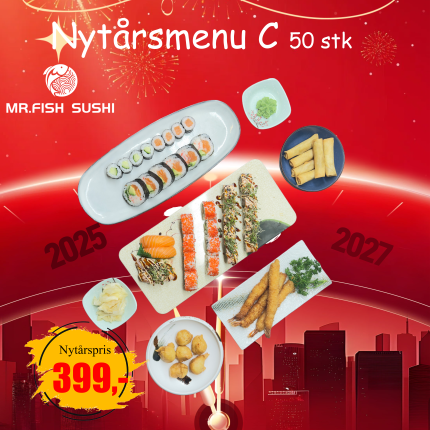 Ring til os eller læs mere på https://mrfishsushi-esbjerg.dk. Vi tilbyder dog kun take away d. 31. Dec, og det er derfor ikke muligt at spise i restaurantens. Afhentning af take away d. 31. Dec. 2025 er mellem kl 12.00 og 20.00.