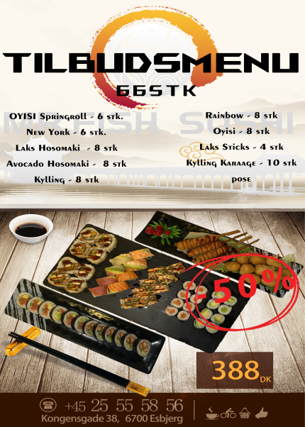 66 Stk Sushi. Normalprisen 778kr ,nu kun 388kr.